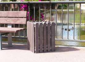 Bank zonder leuning model WS317, afmetingen 200x56x45 cm (bxdxh), materiaal gerecycled kunststof en rvs, gewicht 82 kg, kleur bruin. Ook leverbaar met 5 en 8 dunnere planken met dezelfde afmetingen en bij 5 planken leverbaar in bruin en zwart. |