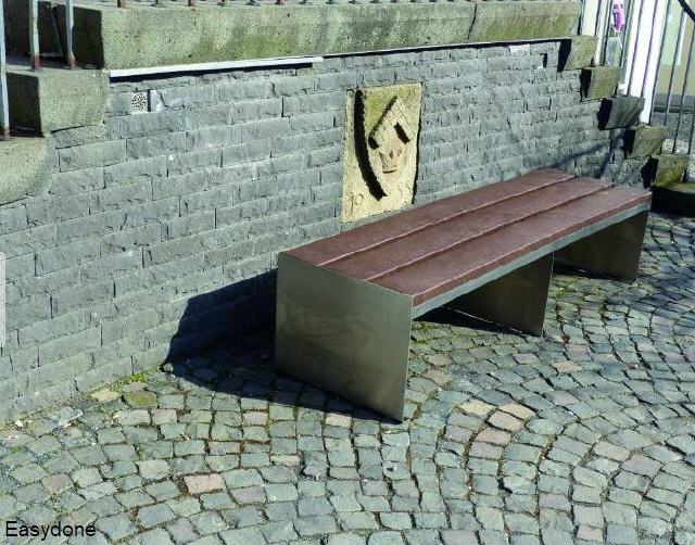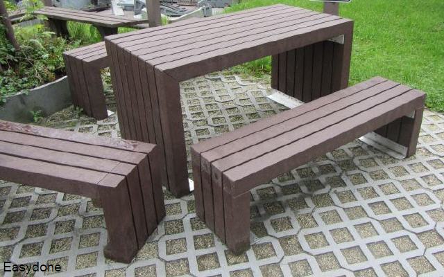 Bank -en tafel model CLO150 bruin, bank afmetingen ca. 150x40 cm (bxd), zithoogte 45 cm, gewicht ca. 70 kg en tafel afmetingen 150x67 cm (lxb), tafelhoogte 75 cm, gewicht ca. 145 kg, kleuren bruin, grijs en zwart. |