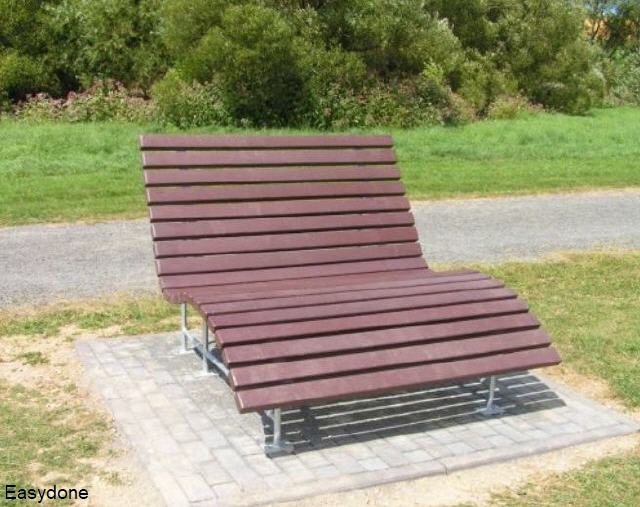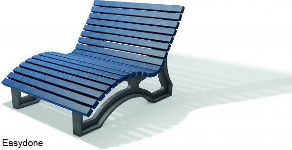 Kunststof zit/ligbank model ELD150, totale afmetingen 150x165x115 cm (bxdxh), gewicht 150 kg, standaardkleuren bruin en combinatie blauw/groen. |