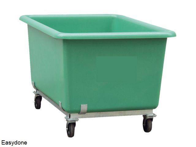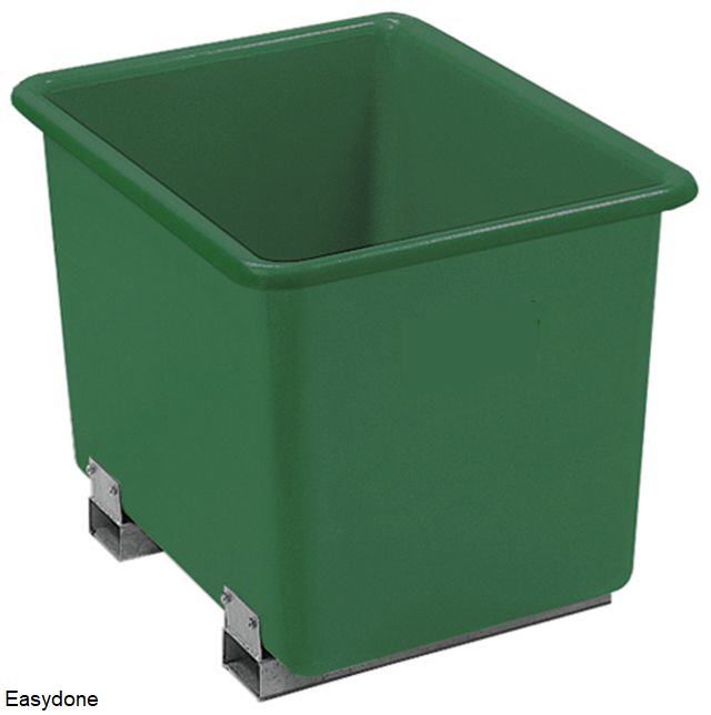 Kunststof containers model REB, verkrijgbaar in 12 afmetingen (volumes van 100 t/m 4500 liter), UV-kleurbestendig, materiaal glasvezelversterkt kunststof, standaardkleuren groen, grijs en blauw, exclusief deksel en in elkaar stapelbaar. Optioneel: deksel, wielen met onderstel, voetsteunen, etc. Zie ook nog onderstaande afbeelding als voorbeeld van container met onderstel en wielen. Fabrieksgarantie 10 jaar. |