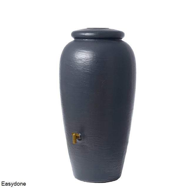 Regenreservoir model ATE, rond uitvoering, afmetingen 118x59x59 cm (HxBxD), inhoud 220 liter, inclusief kraan. Standaardkleur: antraciet. Ook leverbaar met inhoud 300 en 500 liter en standaardkleur terra. |