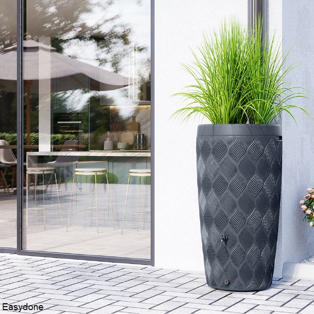 Regenreservoir model DLA, afmetingen 112x59,5x59,5 cm (HxBxD), inhoud 240 liter, compleet inclusief plantpot en kraantje. Standaardkleuren: wit, antraciet, grijs, beton en bruin. |