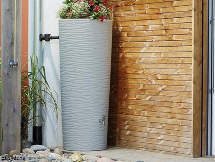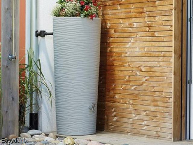 Regenreservoir model NTE, afmetingen 150x62x62 cm (HxBxD), inhoud 350 liter, compleet inclusief plantpot en kraan. Standaardkleuren: arctic, sahara en ocean. Weerbestendig en UV-stabiel. |