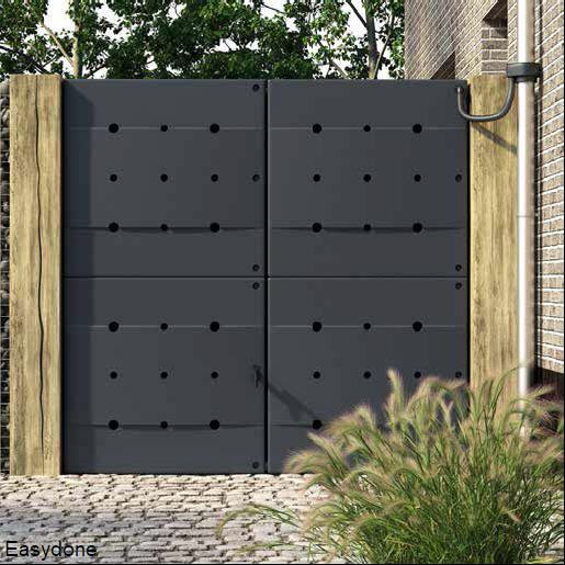 Regenreservoir model RB (set 2 stuks), geschikt als schuttingdeel en modulair op te bouwen/koppelbaar, afmetingen per deel 92x92x25 cm (HxBxD), inhoud per deel 165 liter, inclusief verbindingselementen en kraan, standaardkleur grafiet. De afbeelding bevat 4 modulen. |