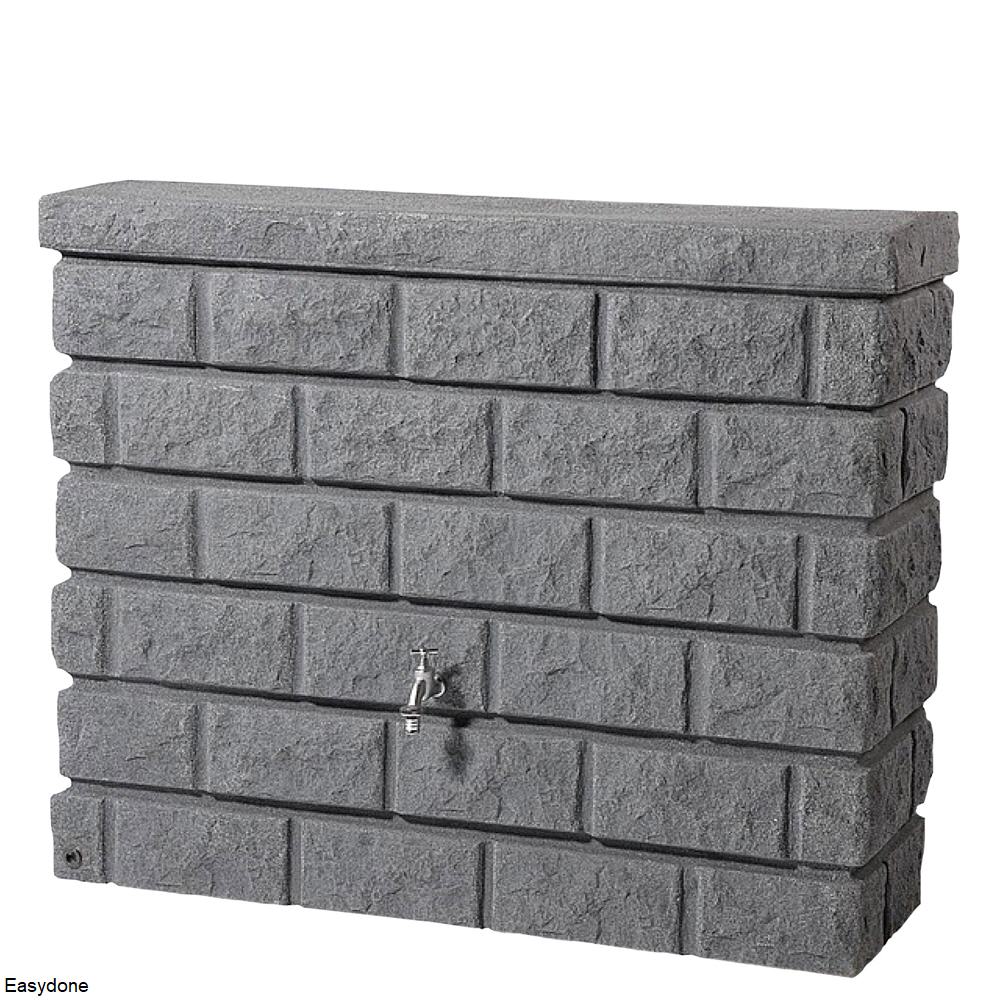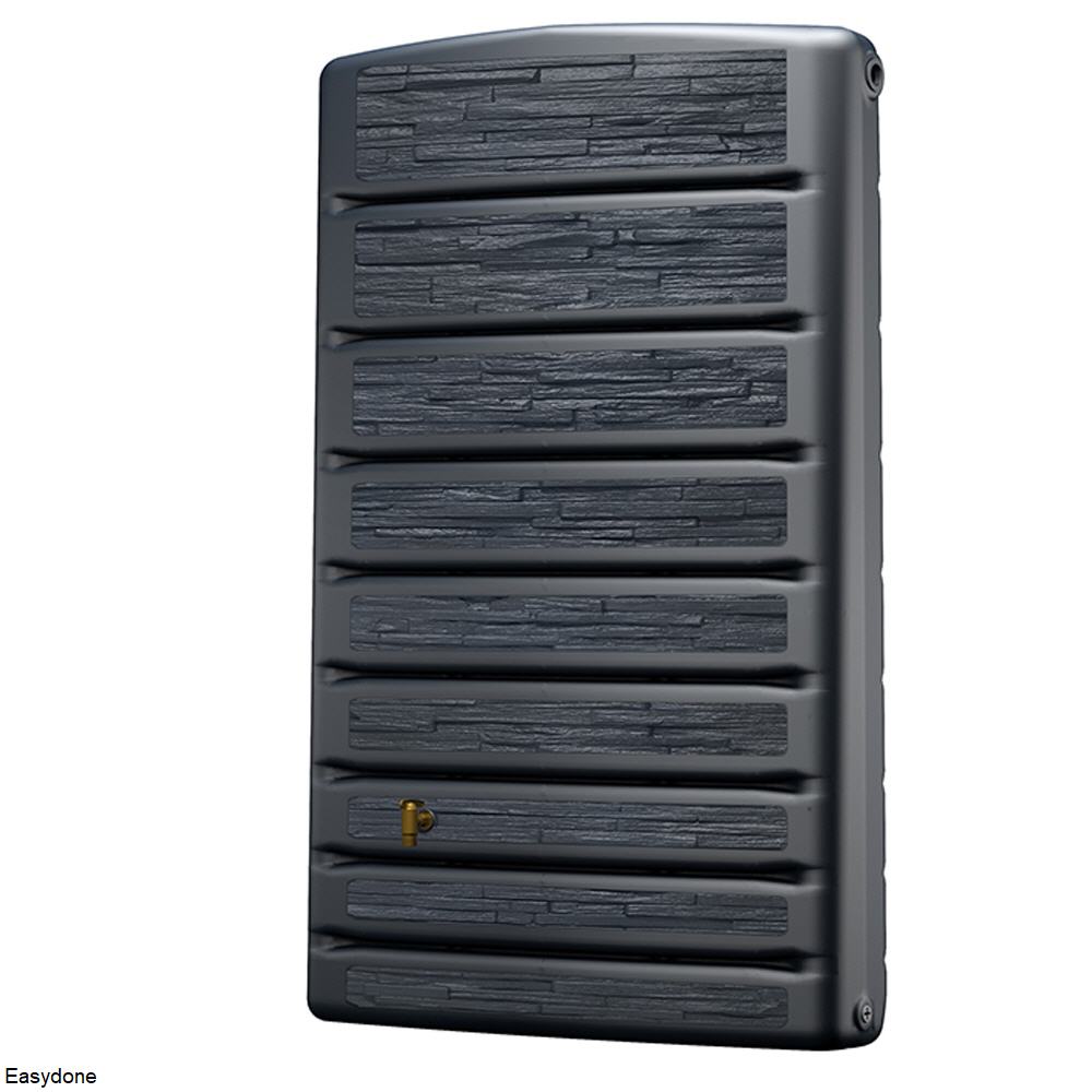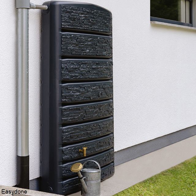 Regenreservoir model SLM, afmetingen 184x119x28 cm (HxBxD), inhoud 400 liter, inclusief kraan, standaardkleuren: steendecor grafiet en beige. Ook leverbaar met 350 en 500 liter. |