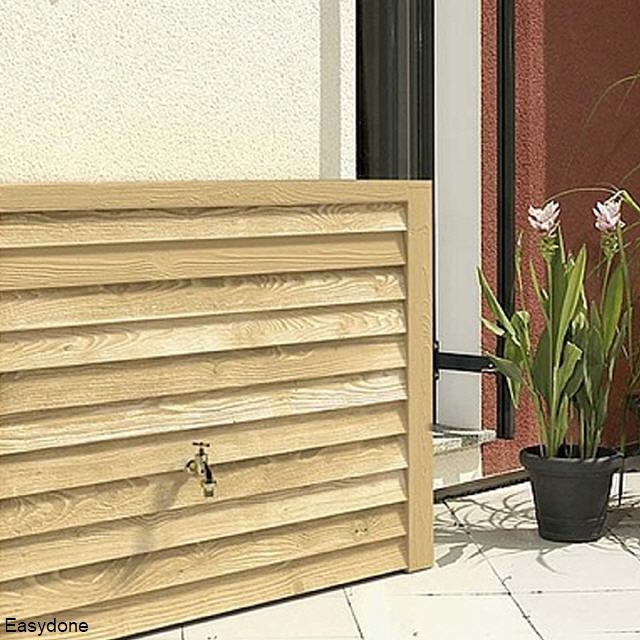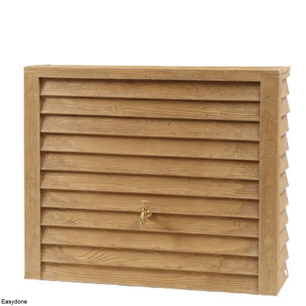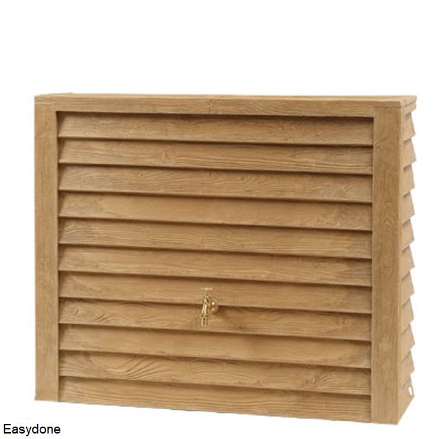 Regenreservoir model WDY, afmetingen 100x124x40 cm (HxBxD), inhoud 350 liter, inclusief kraan. Standaardkleuren: licht -en donkerhout. |